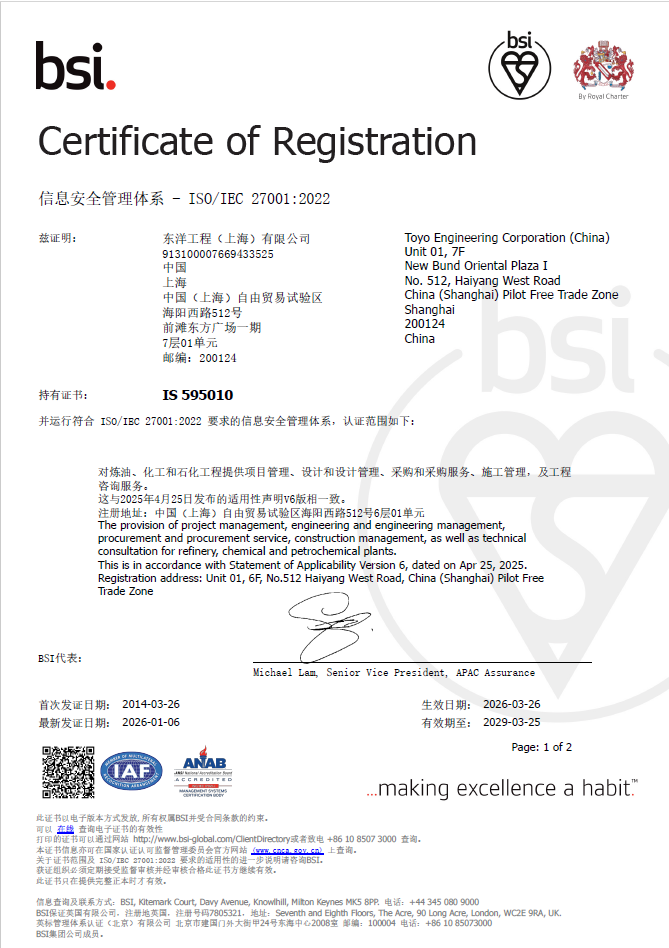 In the future, Toyo-China will continuously improve our information security management system to provide reliable security assurance for our clients and partners.