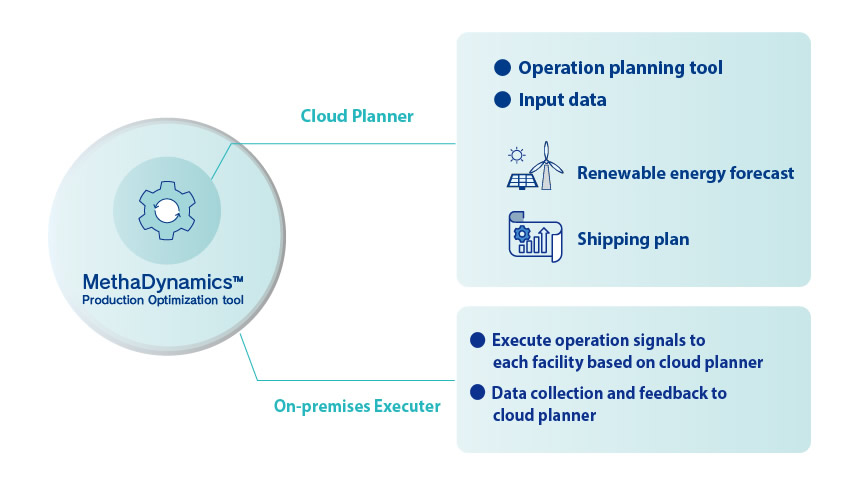 This tool supports efficient e-methanol production by adapting to fluctuating renewable energy and demand, optimizing plant operations, and automatically controlling the plant to make full use of renewable energy.