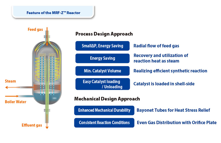 The synthesis reaction employs TOYO’s highly efficient and proven MRF-Z™ reactor, developed through years of experience.