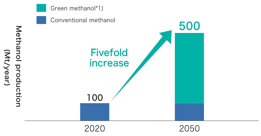Methanol production is expected to increase fivefold by 2050, driven by rising demand for clean fuels