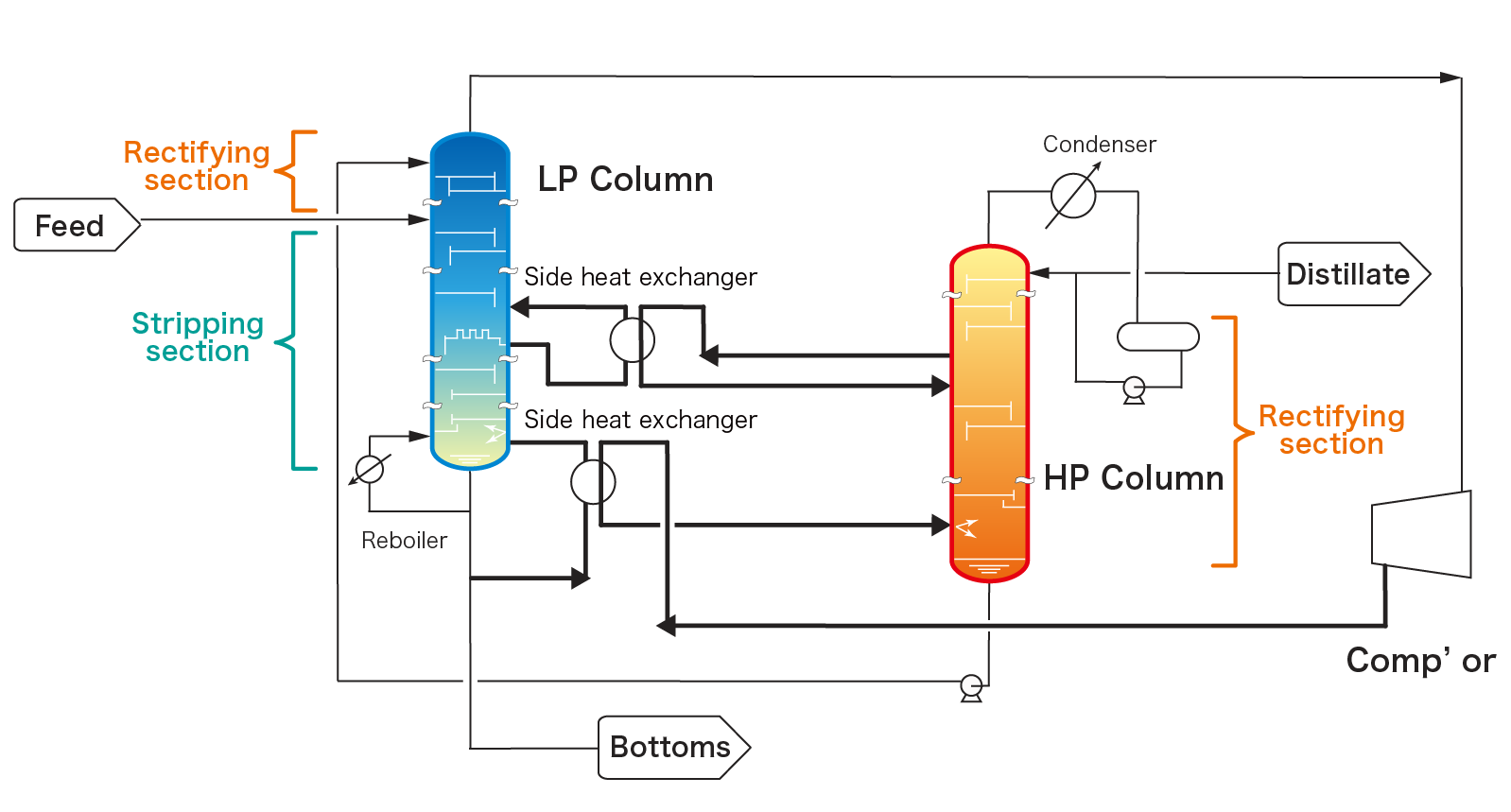 - Side heat exchangers can be provided at composition where enthalpy change should be provided.