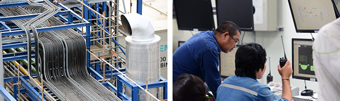 プラント建設に必要な資材を購入し、タイムリーに現場に届けるのが調達部門の仕事だ。本案件では入社2年目の河田が担当。「実際のプロジェクトは本当に時間勝負だということ。特に本案件はスケジュールが厳しく、絶対に工期を遅らせられないという強い意識を持って仕事に取り組んでいる」。