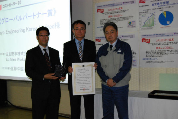 東洋エンジニアリングコリア(代表取締役社長· 小山内 亨)は2015年4月21日、電気硝子コリア(Electric Glass Korea Ltd.,以下、EGKr)の発注元である日本電気硝子(Nippon Electric Glass Co.LTD.,以下、NEG)から「グローバル·パートナーシップ·アワード」を受賞しました。
